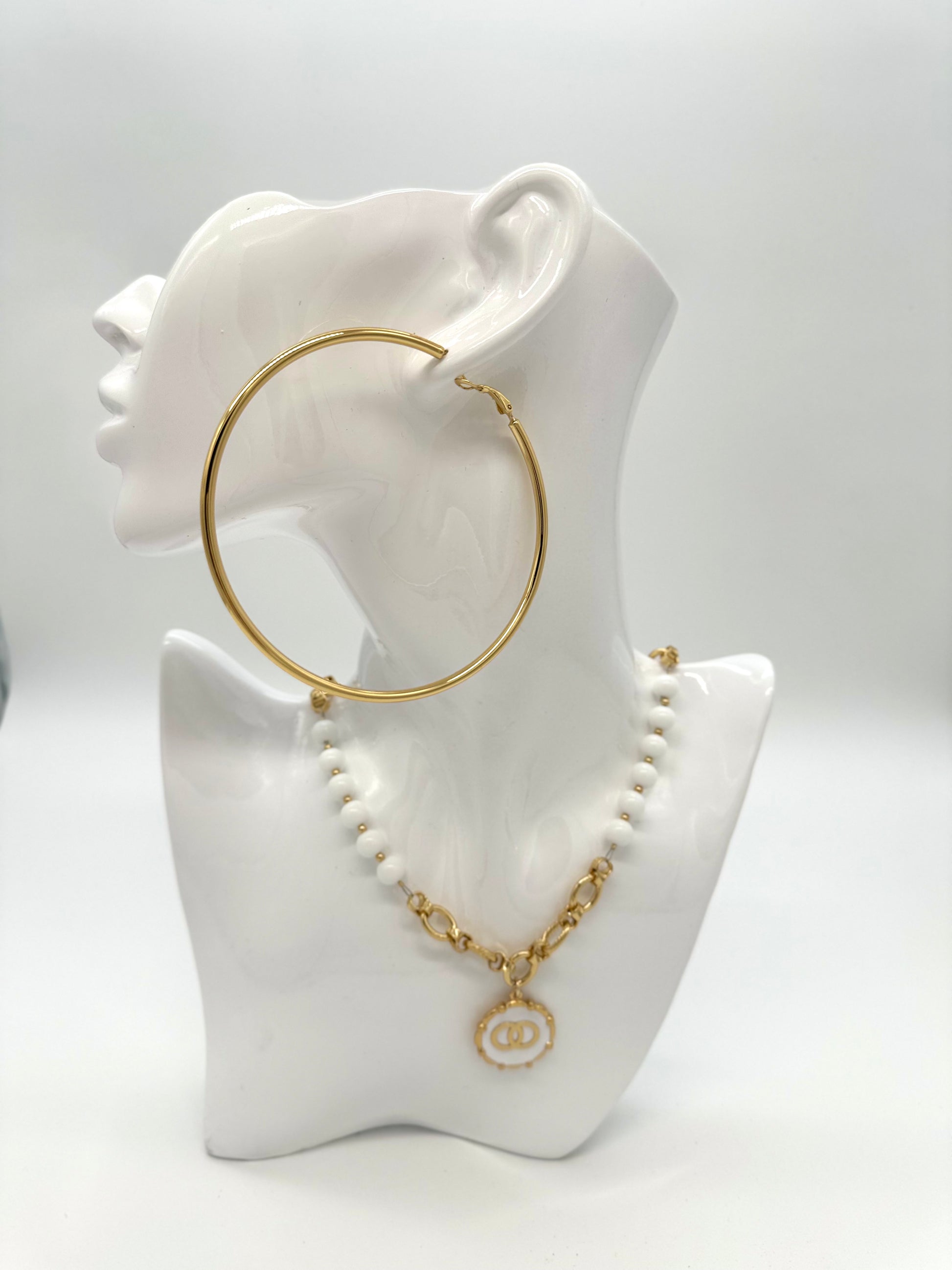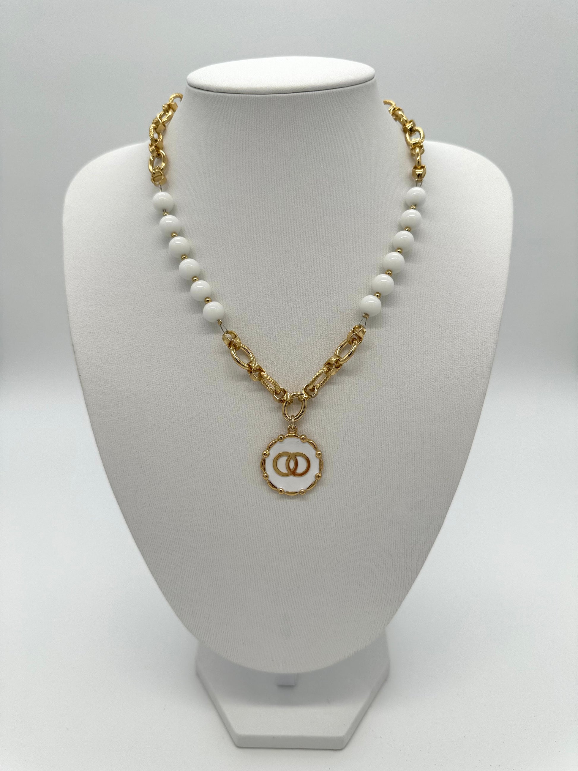 Colibra necklace. Stainless steel and white beads create a stunning effect. Non-allergenic.