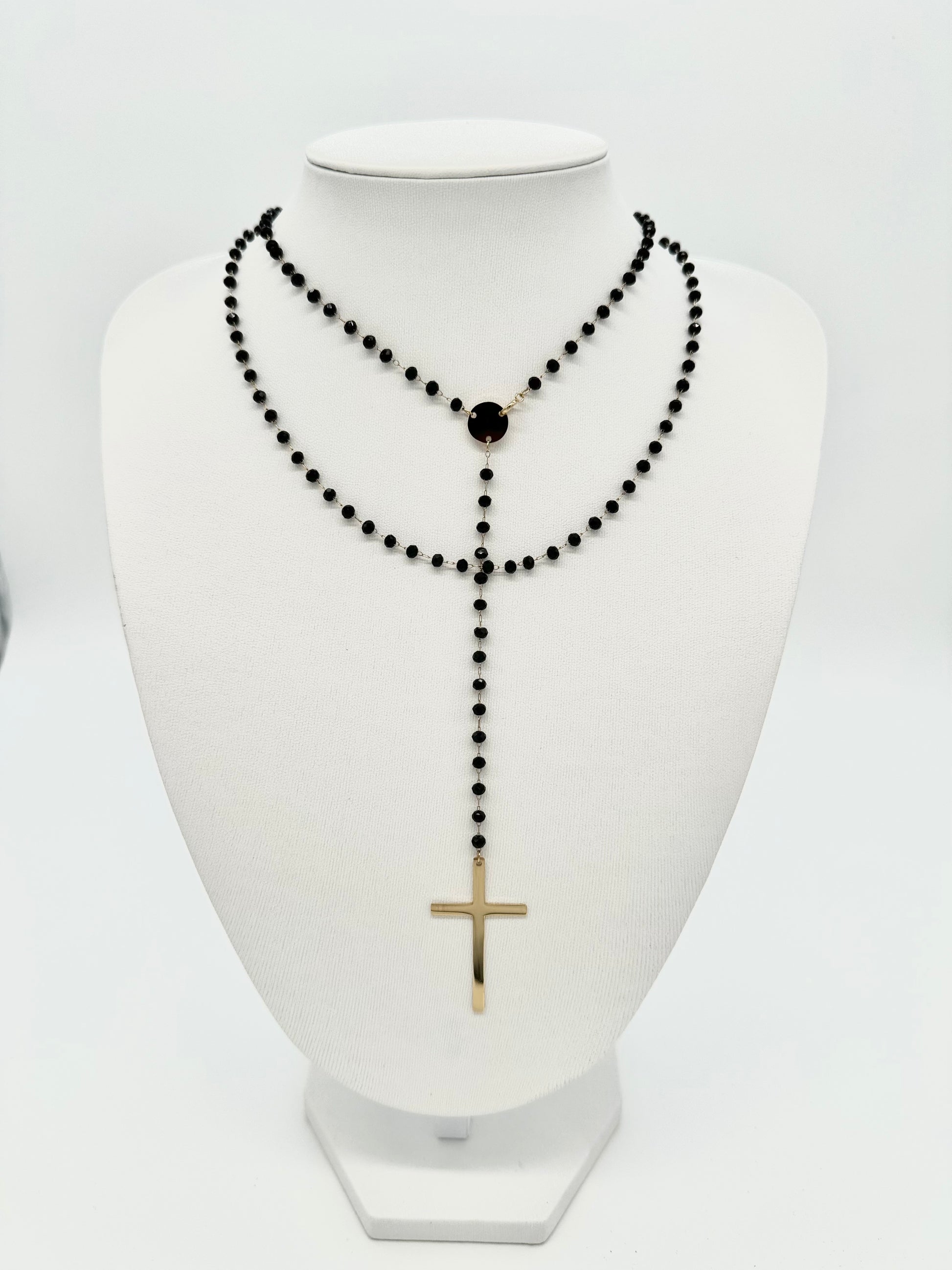 Necklace made of shiny black beads made of stainless steel